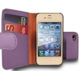 #1: JAMMYLIZARD | Pochette VIOLETTE en cuir exclusive avec deux cases pour vos cartes bancaires pour Apple IPhone 4/4s protège écran inclus !